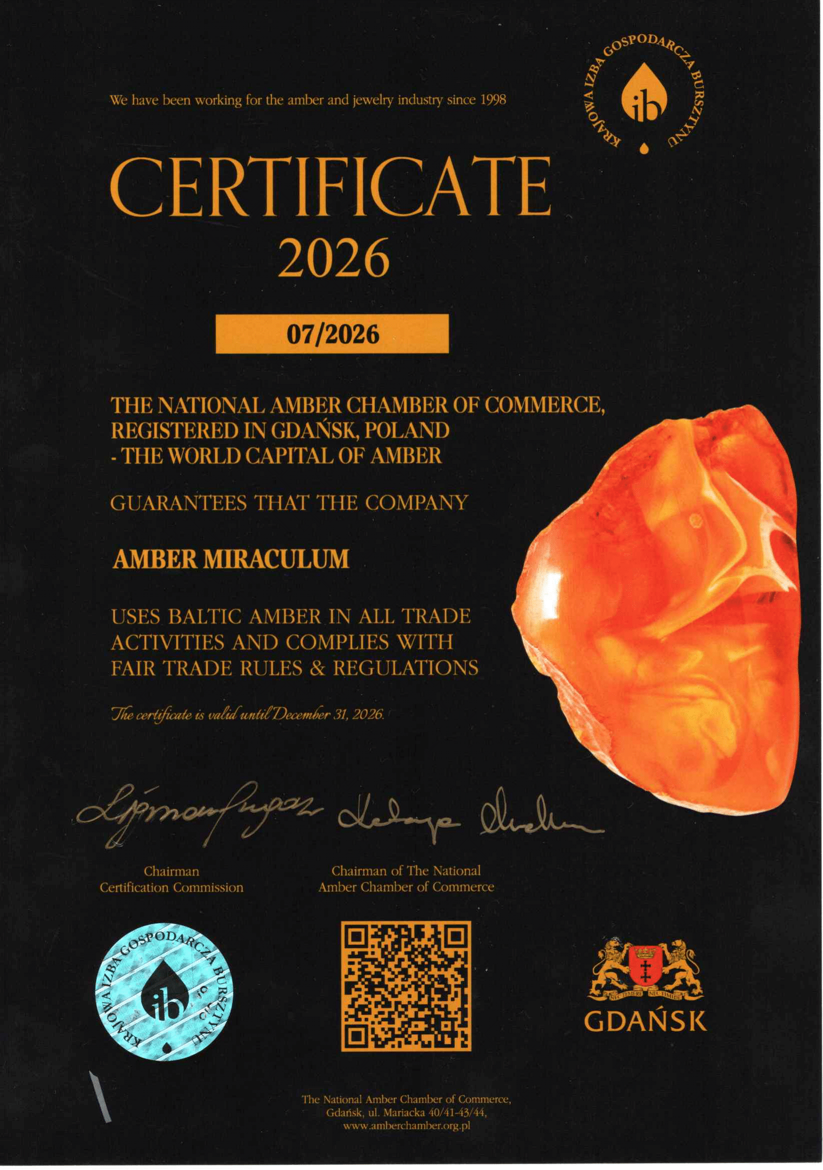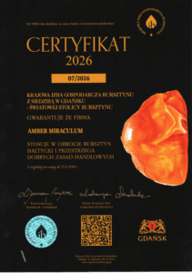Nasze wyroby rekomendowane są przez Krajową Izbę Gospodarczą Bursztynu — potwierdzenie jakości i autentyczności biżuterii oraz produktów.